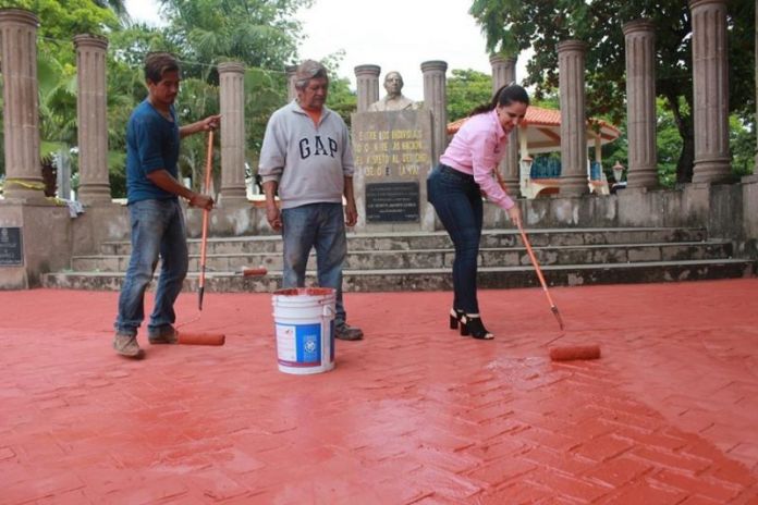 Xicoténcatl, Tam.- La presidente municipal de Xicoténcatl Noemy González Marquez dio el banderazo para hacerle un cariñito a la plaza principal de ese municipio.