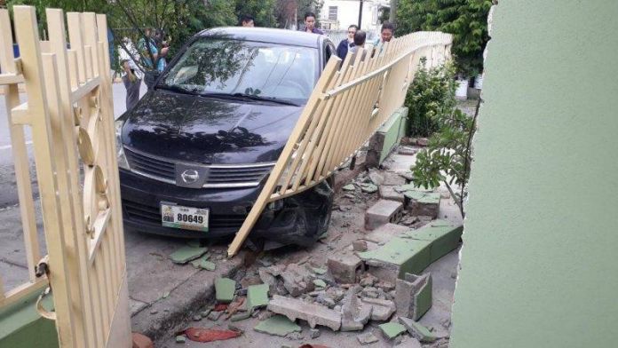 Tras el impacto el joven trepó a la banqueta estrellandose contra el barandal de un domicilio, el cual destrozó por completo.