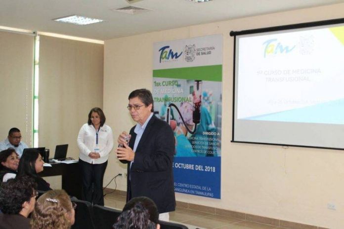Con la representación de la secretaria de Salud, Gloria Molina Gamboa, el funcionario inauguró en esta capital los trabajos académicos del primer Curso de Medicina Transfusional, en el que participaron autoridades y personal de bancos de sangre públicos y privados del estado.