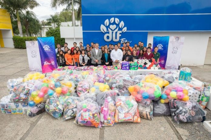 A través de la colecta anual “Manos Universitarias” que se realizó en la escuelas, Facultades y Unidades Académicas de todo el estado, se lograron recaudar 5 mil 500 juguetes, 500 cobijas y 8 mil 500 paquetes de higiene personal que contienen pañales, papel sanitario y toallas sanitarias.