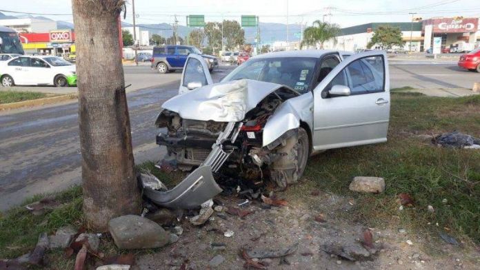 Cd. Victoria, Tam.- Dos lesionados y considerables daños materiales fue el saldo de un choque que fue causado por el conductor de un automóvil tras perder el control del volante e impactarlo contra una palmera.