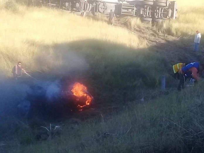Cd. Victoria, Tam.- Trágica muerte tuvo el conductor de un automóvil luego de estrellarse contra una pipa y posteriormente salir de la carretera donde se incendió.