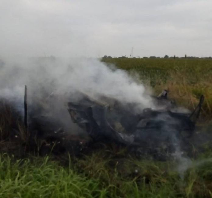 Durante el trayecto la persona salió disparada de la camioneta quedando tendido entre los matorrales mientras que la unidad empezó a incendiarse.