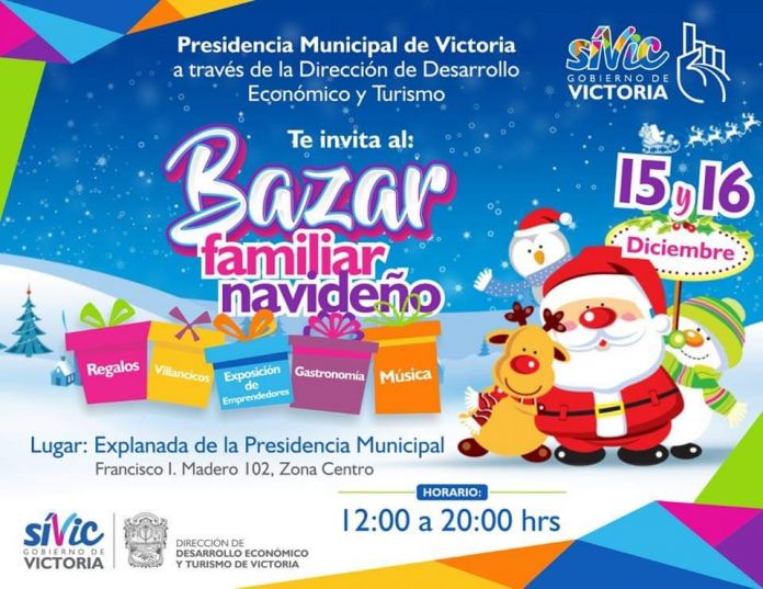 Cd. Victoria, Tam.-Para promover el consumo de productos locales, la Presidencia Municipal de Victoria que encabeza Xicoténcatl González Uresti realizará el primer “Bazar Familiar Navideño” en el que participan con la venta de sus productos hechos en casa, 50 emprendedores por día.