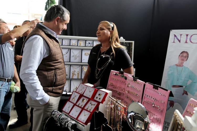 Acompañado del Cabildo maderense y representantes del sector comercial, el alcalde Adrián Oseguera Kernion, cortó el listón para inaugurar el bazar.