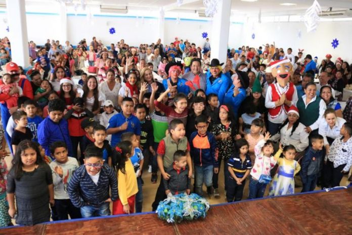 Los niños y niñas asistentes disfrutaron de un atractivo show de payasos, así como de un sorteo de atractivos obsequios (más de 400) por parte de la alcaldesa Alma Laura Amparán.