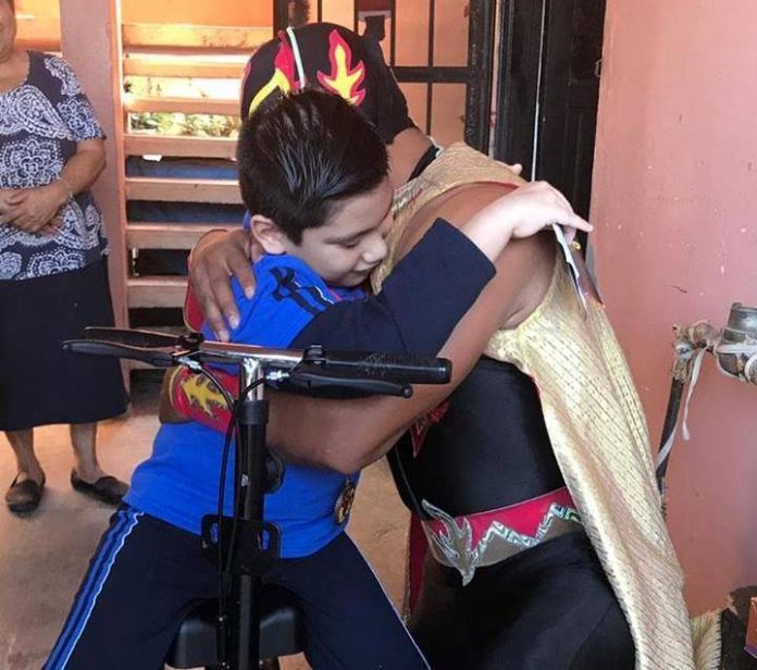 Con diez años de edad, Axel presenta un retraso sicomotriz y un daño neurológico leve y es un fiel seguidor de las carteleras de lucha libre que se realizan en nuestra Ciudad cada dos semanas, pero si algo anhelaba era conocer en persona a Fuego Latino, quien recibió la petición de los Reyes Magos y todo se dio para que ambos se reunieran.