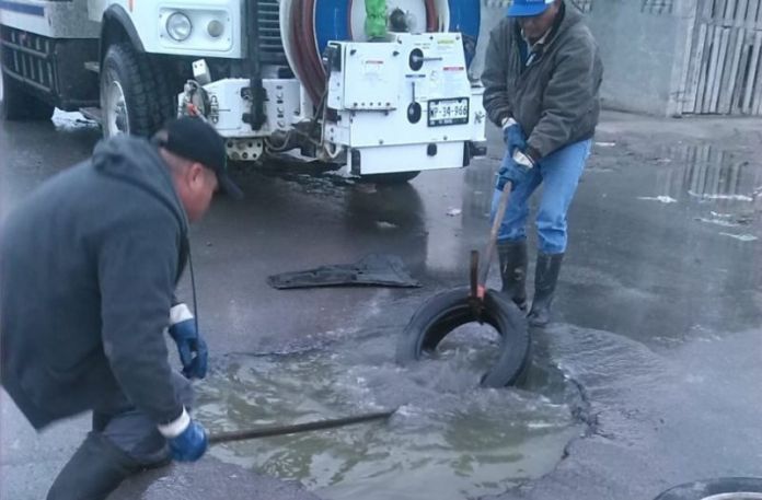 Más basura, y hasta piedras, extrajeron las cuadrillas del organismo rector del agua potable y alcantarillado de las líneas generales de drenaje sanitario y pozos de visita de las colonias Narciso Mendoza, Balcones de Alcalá, Pedro J. Méndez y La Cañada.