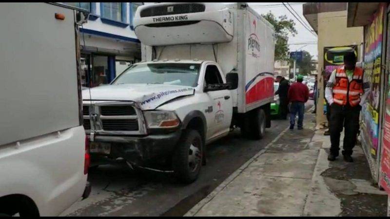 Cd. Victoria, Tam.- Dos regiomontanos se encontraron en esta ciudad capital, cuando uno de ellos omitiera un señalamiento de alto para ser impactado por el otro que manejaba un camión de tres y media toneladas, los hechos en pleno centro de la ciudad.