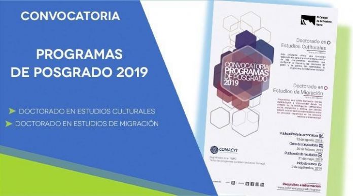 Cd. Victoria, Tam.- El Colegio de la Frontera Norte ofrece las Convocatorias de Programas de Posgrado 2019 registrados en el Padrón Nacional de Posgrados de Calidad (PNCP) del Consejo Nacional de Ciencia y Tecnología; y que a través de la formación de profesionistas de alto nivel académico, contribuyen al desarrollo de las regiones fronterizas.