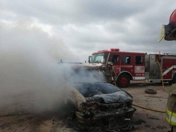 Al sitio arribaron los bomberos para controlar las llamas de la Ranger que quedó inservible.