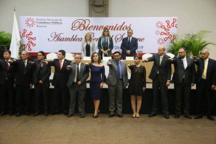 Como presidente entrante, Alma Delia Fuentes Garibay, con los nuevos directivos, Juan Gabriel Espinoza Uribe, vicepresidente, y Javier Cotera Mora, tesorero, y miembros de la directiva rindieron protesta para el ciclo 2019 del Colegio, parte del Instituto Mexicano de Contadores Públicos.