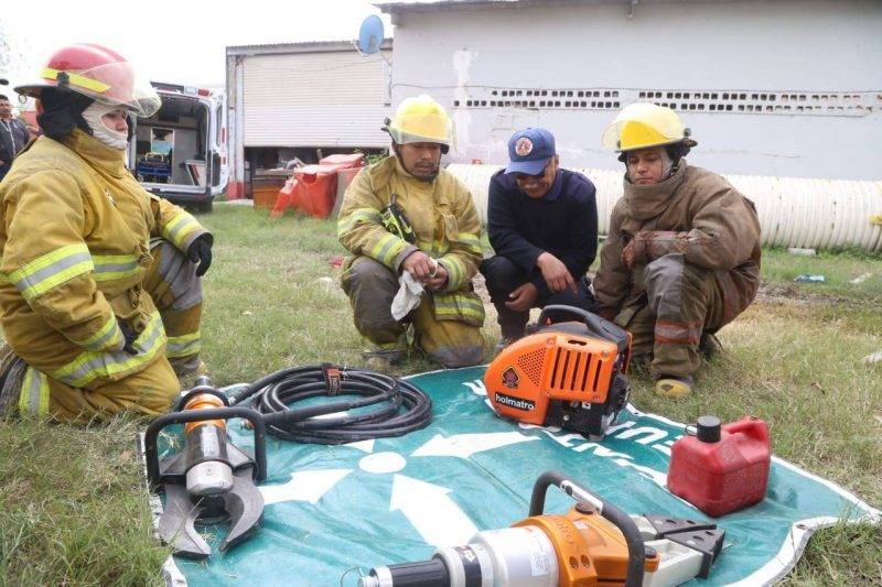 Utilizando las Tijeras de la Vida, adquiridas por la Alcaldesa Maki Ortiz Domínguez en su recién concluida primera administración, dos instructores y el personal de la dependencia utilizaron esta herramienta para cortar un vehículo colisionado, en simulacro, y extraer con seguridad a la víctima para ser dirigida a atención médica.