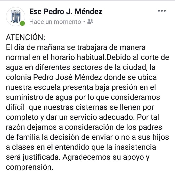 Otras como la Pedro J. Mendez, dejan a consideración de los padres enviar a sus hijos aun y la falta de agua.