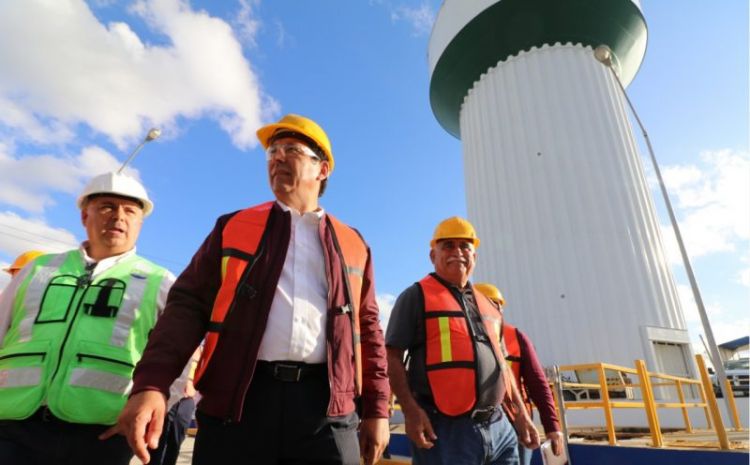Al término de la entrevista, el Alcalde López Hernández inició un intenso recorrido que inició en la obra de toma ubicada en el bordo del río Bravo, lugar donde inicia el proceso de tratamiento del vital líquido que reciben los ciudadanos en sus hogares.