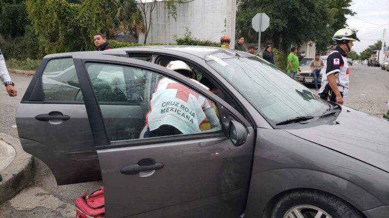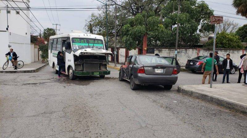 El accidente ocurrió este miércoles en el 20 Gutiérrez de Lara, lugar al cual acudieron paramédicos de Cruz Roja para valorar a seis personas, tres de ellos viajaban a bordo del automóvil y otros tres en la unidad de transporte público.