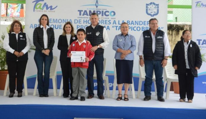 En la escuela primaria Ignacio Manuel Altamirano de la zona centro, el Presidente municipal Chucho Nader, acompañado de su esposa, la Presidenta del sistema DIF Tampico, Aida Feres Nader encabezó la ceremonia de honores a los símbolos patrios y el arranque del programa «Tampico Brilla» en las instituciones educativas.