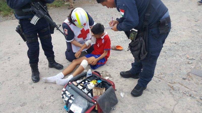 Paramédicos de la Cruz Roja se trasladaron al libramiento Naciones unidas a la altura de la colonia El Mirador, donde les brindaron los primeros auxilios a dos menores de edad de 13 y 14 años respectivamente.