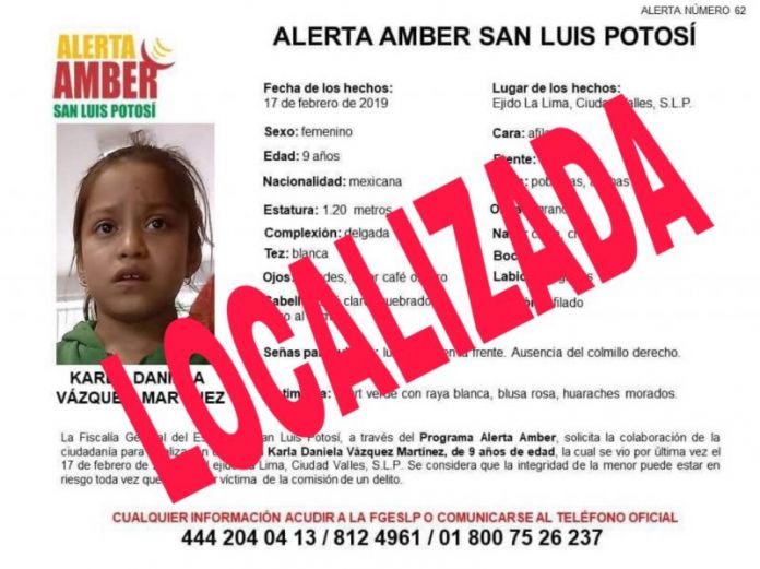 La pequeña Karla Daniela Vázquez Martínez fue localizada sana y salva la madrugada de este jueves.