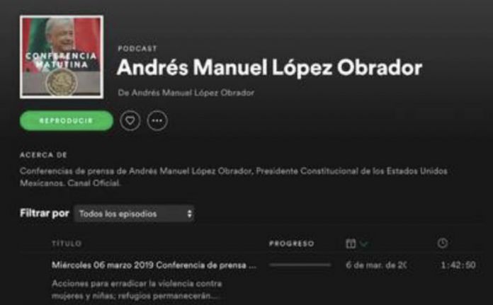 El presidente Andrés Manuel López Obrador informó que sus conferencias de prensa matutinas se encuentran disponibles en la plataforma de streming Spotify.