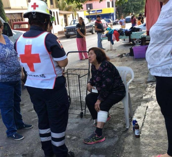 Paramédicos de la Cruz Roja acudieron a la calle Janambres entre Pascual Orozco y Felipe Ángeles de la colonia Adolfo López Mateos para brindarle los primeros auxilios a una persona de la tercera edad de aproximadamente 70 años.