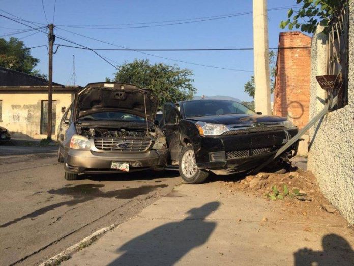 Ambas unidades perdieron el control después del impacto, declinando su trayectoria y terminaron por derribar una nomenclatura y chocando la barda de un domicilio particular.