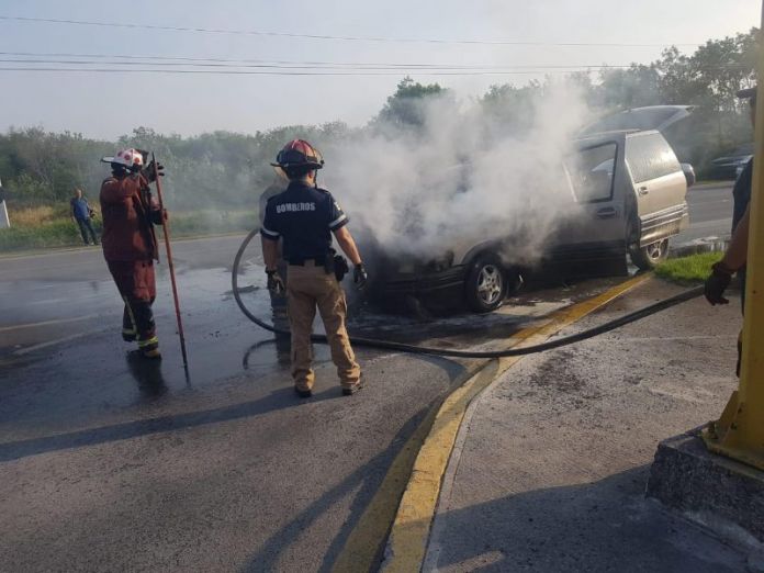 El susto de su vida se llevó una familia cuando al viajar en su camioneta repentinamente se incendiara consumiéndola en su totalidad.