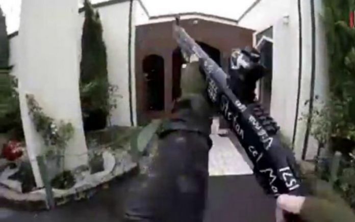 En las imágenes se ve cómo el sujeto empuña primero un rifle, que emplea para disparar a las personas de la entrada de la mezquita, y después un arma automática, con la que lleva a cabo la mayor parte de la matanza en el interior de la mezquita.