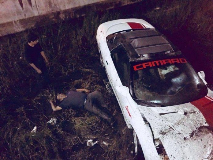Matamoros.-El conductor de un Chevrolet, Camaro perdió el control del volante al ir a exceso de velocidad sobre la Avenida del Niño y terminó en el canal de aguas negras, arrollando a un comerciante que de igual forma acabó en el fango abajo del deportivo.