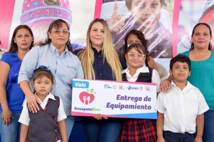 Mejorando la alimentación de los alumnos altamirenses, la presidenta del Sistema DIF Altamira, Alma Laura Hernández Amparán entregó equipamiento para desayunadores a seis planteles educativos conforme a lo establecido en el programa Desayuna Bien, que beneficia a más de seis mil alumnos con desayunos de alto valor nutricional de 44 escuelas entre jardines de niños, primarias y secundarias.