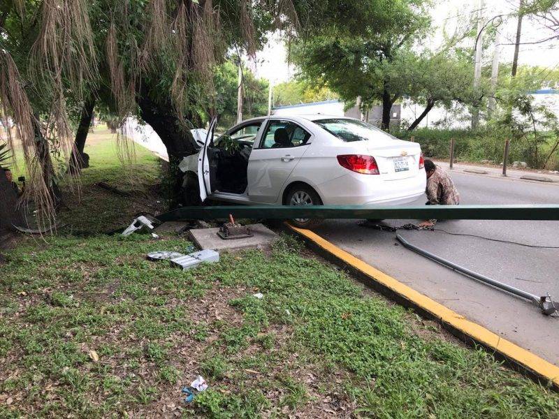 Cd. Victoria, Tam.- Una conductora que sufrió un mareo estuvo a punto de salir seriamente lesionada al impactar su unidad contra una luminaria, derribándola por completo hasta terminar chocando contra un árbol.