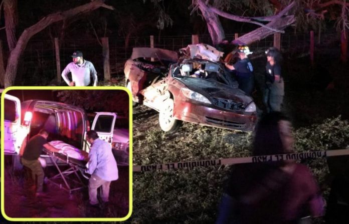 Mortal percance vehicular se registró en la carretera a Playa Bagdad, a la altura del ejido Huisachal, luego de que un conductor perdiera el control del vehículo y se impactara contra un árbol, muriendo prensado al igual que su acompañante.