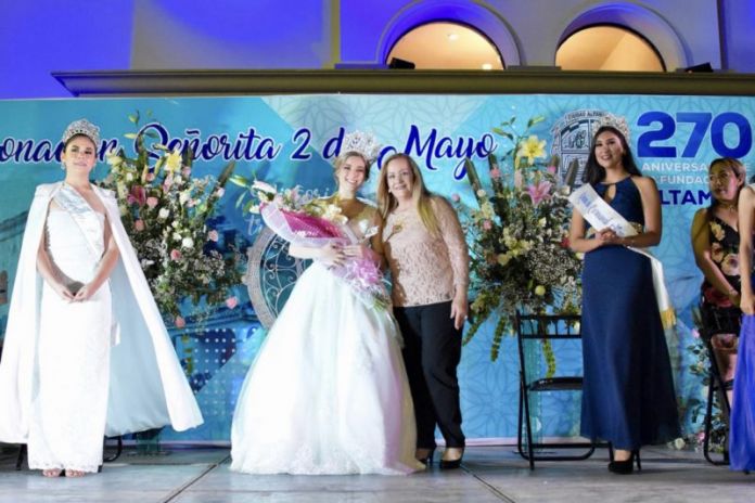 En el marco de las festividades del 270 aniversario de la fundación de Altamira, la alcaldesa Alma Laura Amparán Cruz coronó a Martha Elena Castillo Rosas como “Señorita 2 de Mayo’’, en evento desarrollado en la explanada del Palacio Municipal de Gobierno, el cual contó con la presencia de autoridades navales y civiles, así como embajadoras juveniles y representantes de belleza.