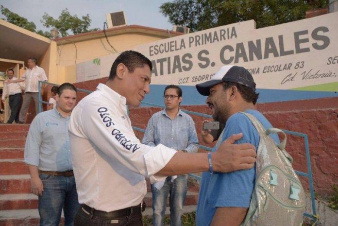 Cd. Victoria, Tam.- Esta mañana el candidato a Diputado Local por el XV Distrito de Tamaulipas Arturo Soto Alemán, saludó a los padres de familia que asistieron a dejar a sus hijos en la Escuela Primaria Matías S. Canales, refrendando su apoyo con ellos y comentando que desde el Congreso trabajará para que Tamaulipas tenga una educación de excelencia, así como aulas de primer nivel.
