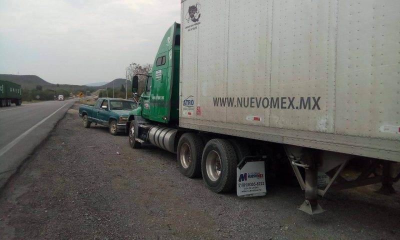 La unidad la desplazaba en sentido de sur a norte sobre la carretera ya mencionada y el chófer de 38 años de edad refiere que el remolque se le desprendió saliendo de la superficie de rodamiento para al finalmente quedar volcado en uno de su costados.