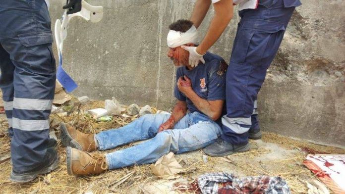 Paramédicos de Cruz roja se trasladaron hasta el lugar de los hechos para darle los primeros auxilios a la persona quien presenta una impresionante herida en la región craneal.