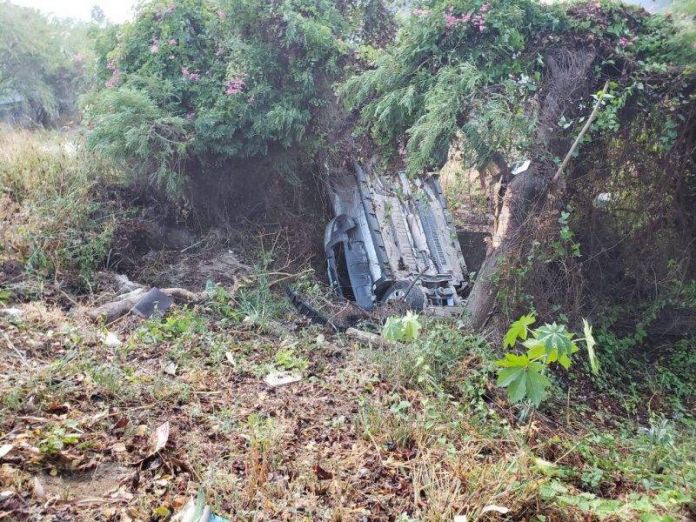Cd. Victoria, Tam.- Cuatro jóvenes que presuntamente andaban amanecidos y en estado de ebriedad, terminaron volcados en el fondo de un barranco.