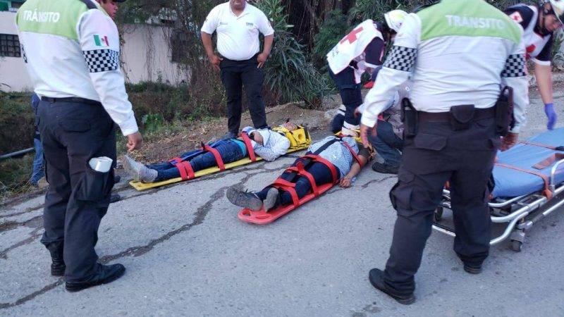 Autoridades viales presumen que los lesionados, además de dos personas más que escaparon del lugar, circulaban a bordo de la camioneta en sentido de poniente a oriente bajando sobre una pendiente.
