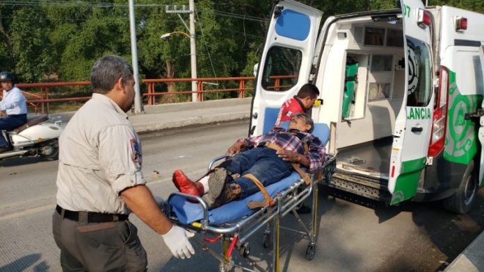 Con una fractura expuesta, terminó un peatón que fue arrollado por un motociclista la mañana del lunes en el vado de la colonia Unidad Modelo de Ciudad Victoria.