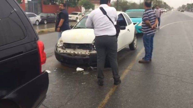 Cd. Victoria, Tam.- A unos cuantos minutos de haberse suscitado dos accidentes sobre la misma avenida, un tercer choque deja como saldo dos personas lesionadas, el choque sucedió frente a la embotelladora Coca-Cola.
