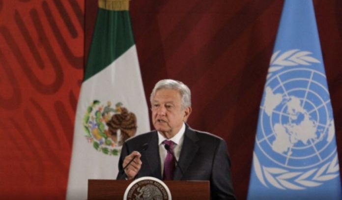Además, agradeció la presencia de legisladores y funcionarios de organismos internacionales (junta a la bandera de México, a su espalda, estaba también la de la Organización de las Naciones Unidas), y adelantó que este lunes se presentará el programa para el desarrollo de México y los países de Centroamérica, para dar atención estructural, de fondo, eficaz y humana al fenómeno migratorio.