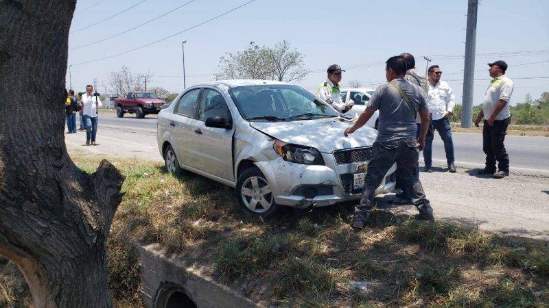 Presuntamente antes de llegar al entronque con carretera Matamoros, una camioneta que se incorporó se frenó de manera aparatosa lo que provocó que el conductor del Aveo lo esquivara para evitar el golpe.