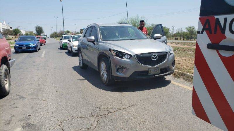 Al ir pasando donde termina el Boulevard Emilio Portes Gil fueron impactados de manera lateral por una camioneta Mazda que circulaba de oriente a poniente y que trataba de incorporarse al mencionado libramiento.