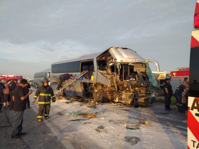 Las primeras indagatorias señalan que el chofer del autobús de la linea Del Norte dormito al volante y se fue contra el trailer chocando de frente.