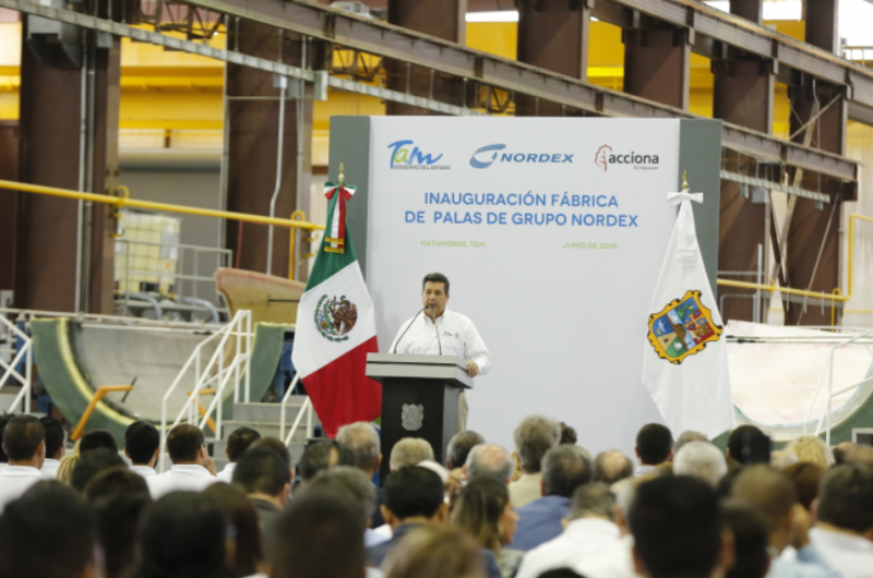Matamoros, Tamaulipas.- El Gobernador, Francisco García Cabeza de Vaca, inauguró este viernes planta de producción de palas para aerogeneradores eólicos, Nordex Acciona, que generará 800 empleos directos gracias a una inversión superior a los $1,200 millones de pesos.