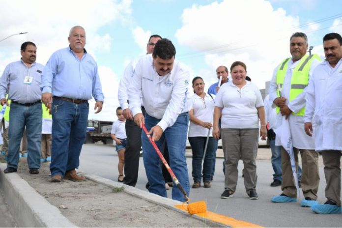 El presidente municipal, Carlos Ulivarri López, encabezó el banderazo de arranque a este programa sobre la calle Francisco I. Madero frente a la planta Valeo, cuyos representantes se encargarán de embellecer y dar mantenimiento a más de cien metros lineales de camellón.