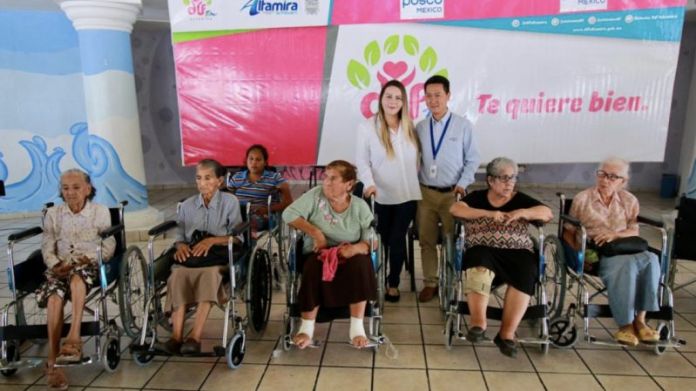 Fortaleciendo las acciones de inclusión social, el Gobierno de Altamira, a través del Sistema DIF Municipal, que preside Alma Laura Hernández Amparán, entregó en coordinación con la empresa coreana POSCO, veintidós sillas de ruedas a personas que padecen alguna discapacidad.