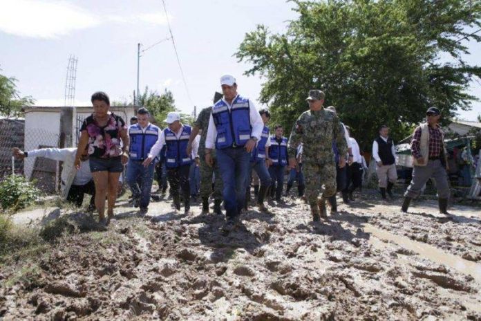 Reynosa, Tamaulipas.- El gobernador, Francisco García Cabeza de Vaca, recorrió los sectores afectados por la lluvia intensa e inundaciones en este municipio, derivado de la tormenta que provocó la precipitación acumulada de 5 a 7 pulgadas en apenas un par de horas.