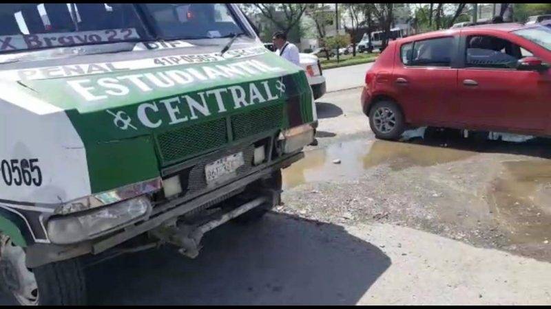 Cd. Victoria, Tam.- Un choque donde participó una unidad del transporte público, dejó como saldo una persona lesionada y varios miles de pesos en daños materiales.