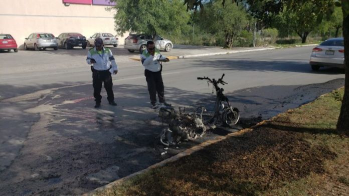 Cd. Victoria, Tam.- Al parecer por un corto circuito una motocicleta se encendió y quedó reducida a cenizas, mientras que su conductor se retiró del lugar.